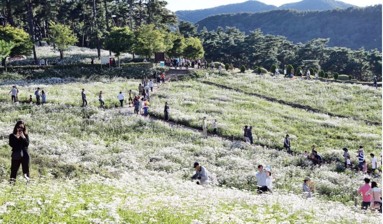 소나무 숲 아래, 하얀 눈이 내린 듯 펼쳐지는 구절초의 향연. 정읍 구절초 꽃축제는 화려함보다는 소박하고 청초한 아름다움이 돋보이는 축제입니다. '어머니의 사랑'이라는 꽃말을 가진 구절초가 솔숲과 어우러져 만들어내는 풍경은, 바쁜 일상에 지친 마음을 위로하고 편안한 휴식을 선사합니다. 특히 이른 아침, 솔숲 사이로 햇살이 비치고 물안개가 피어오를 때의 몽환적인 풍경은 사진작가들이 꼽는 최고의 순간입니다.